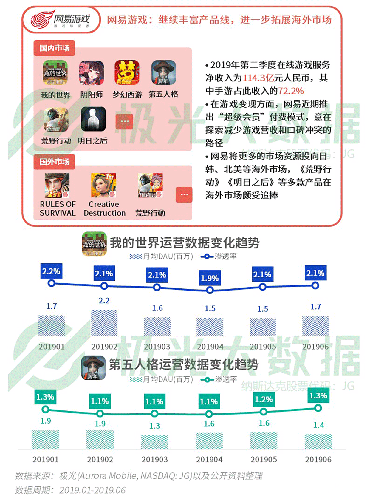 • 《我的世界》《第五人格》《阴阳师》等网易头部主推手游19年Q2渗透率呈增长趋势,用户活跃表现差强人意