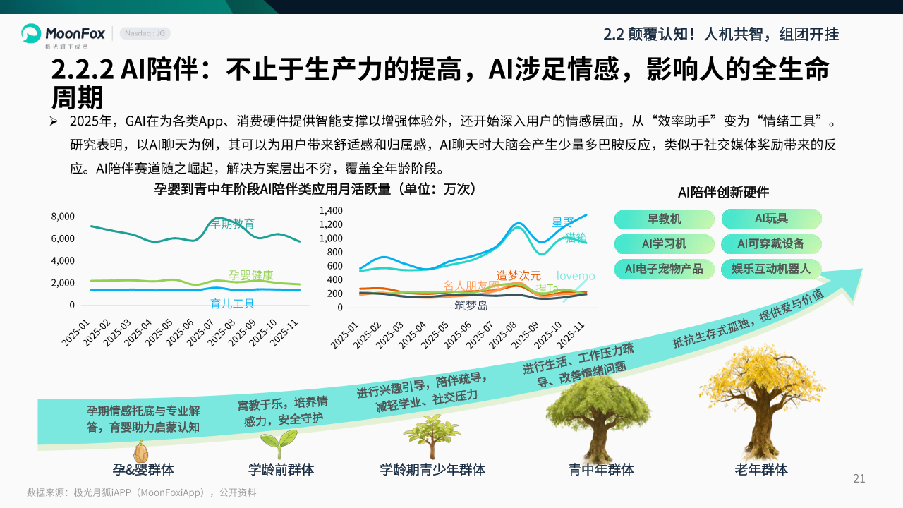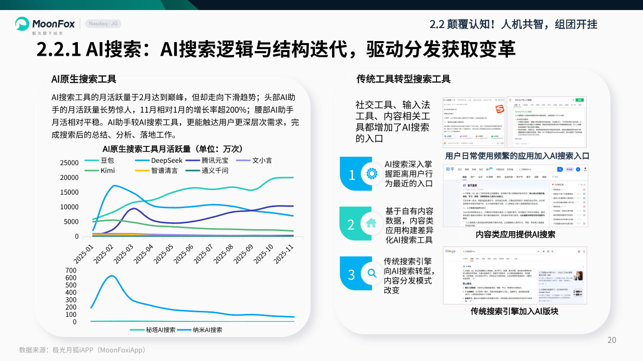在此背景下,极光月狐持续追踪2025年移动互联网各行业热点,敏锐洞察到“脱离惯性、不破难立”的发展大基调——跳出路径依赖、打破发展惯性,于混沌中挖掘典型案例,以案例复盘探寻行业规律,正是我们洞察当前互联网发展现状的核心思维。而“?”,便是极光月狐对2025年移动互联网行业现状的精准总结。极光月狐聚焦人工智能、人类智能协同、消费营销创新、新兴内容生态等核心领域,拆解其在2025年的发展逻辑。