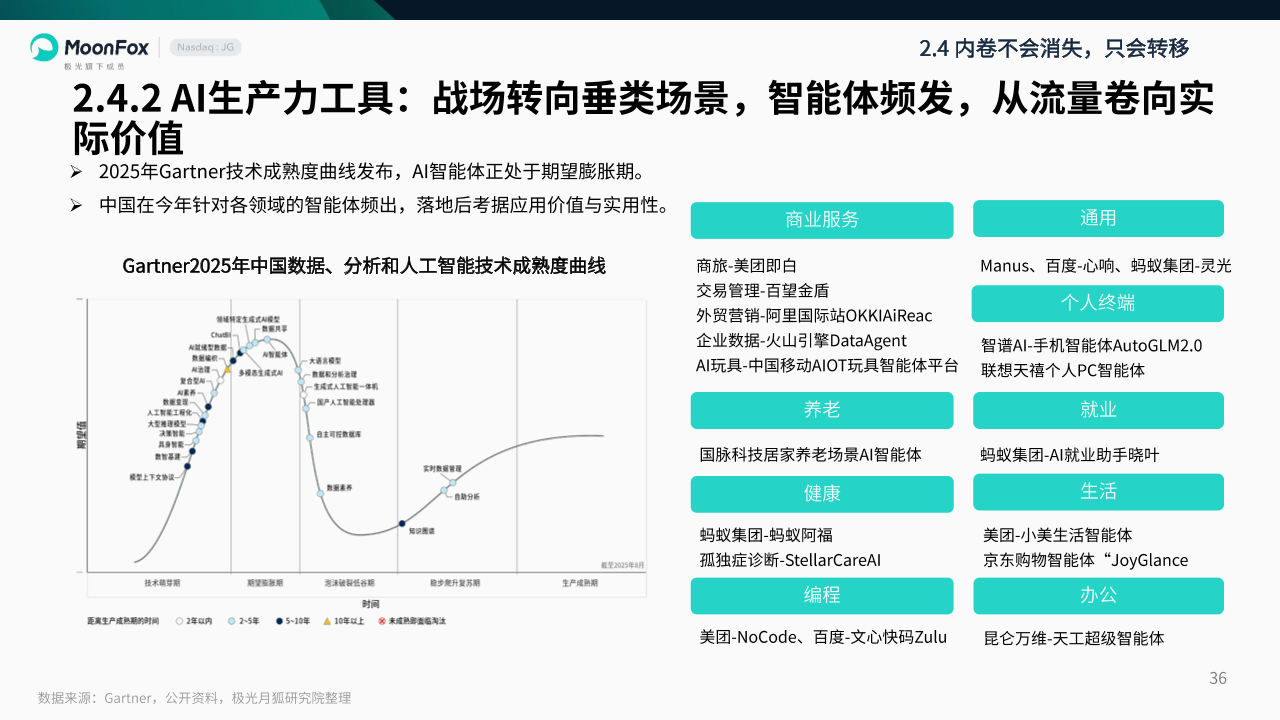 2.4.2 AI生产力工具:2025年战场转向垂类场景,智能体频发,从流量卷向实际价值