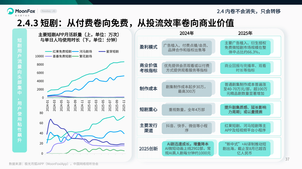 2.4.3 短剧:从付费卷向免费,从投流效率卷向商业价值,从发布数量卷向内容质量