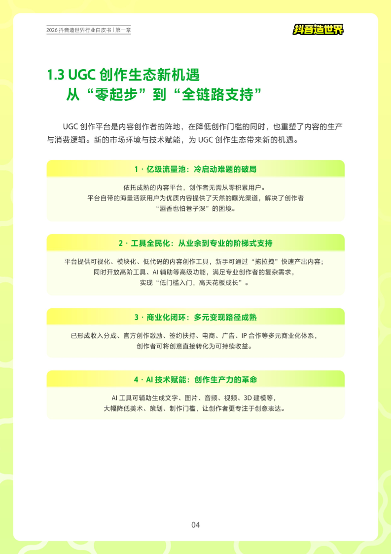 • 1.3 UGC创作生态新机遇:从"零起步"到"全链路支持"