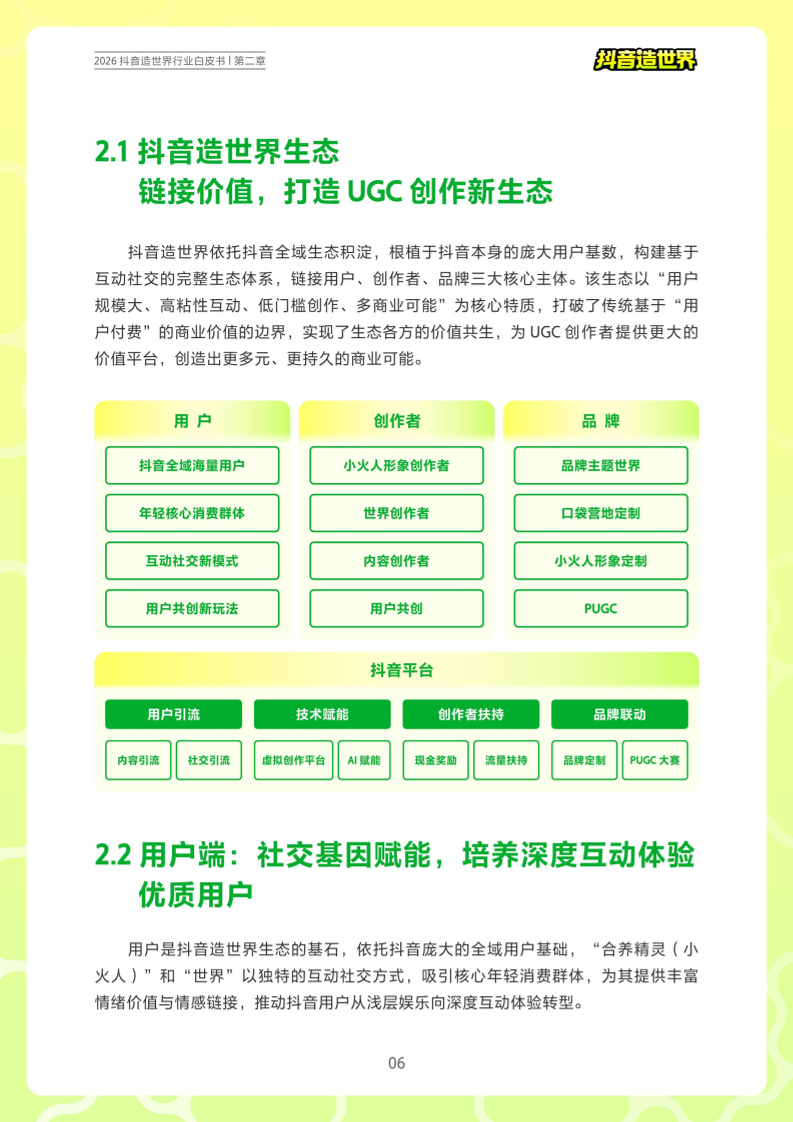 • 2.1 抖音造世界生态:链接价值,打造UGC创作新生态