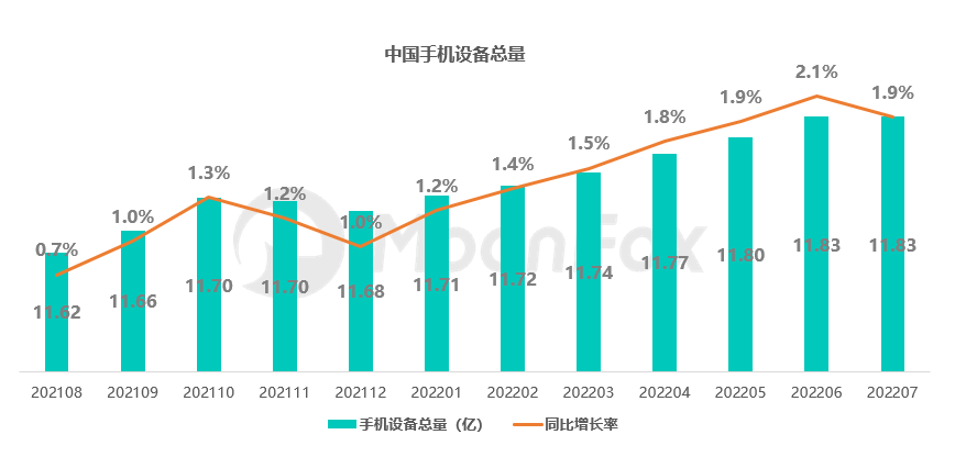 根据iAPP市场概览数据,截至2022年7月,中国手机设备总量达11.83亿,较去年同期增长了1.9%,可见移动应用市场市场规模十分巨大,是名副其实的朝阳产业。