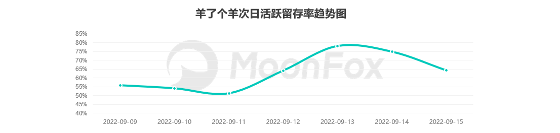 月狐数据显示,《羊了个羊》的次日活跃留存从13日起开始走下坡路,但仍然高达60%以上。