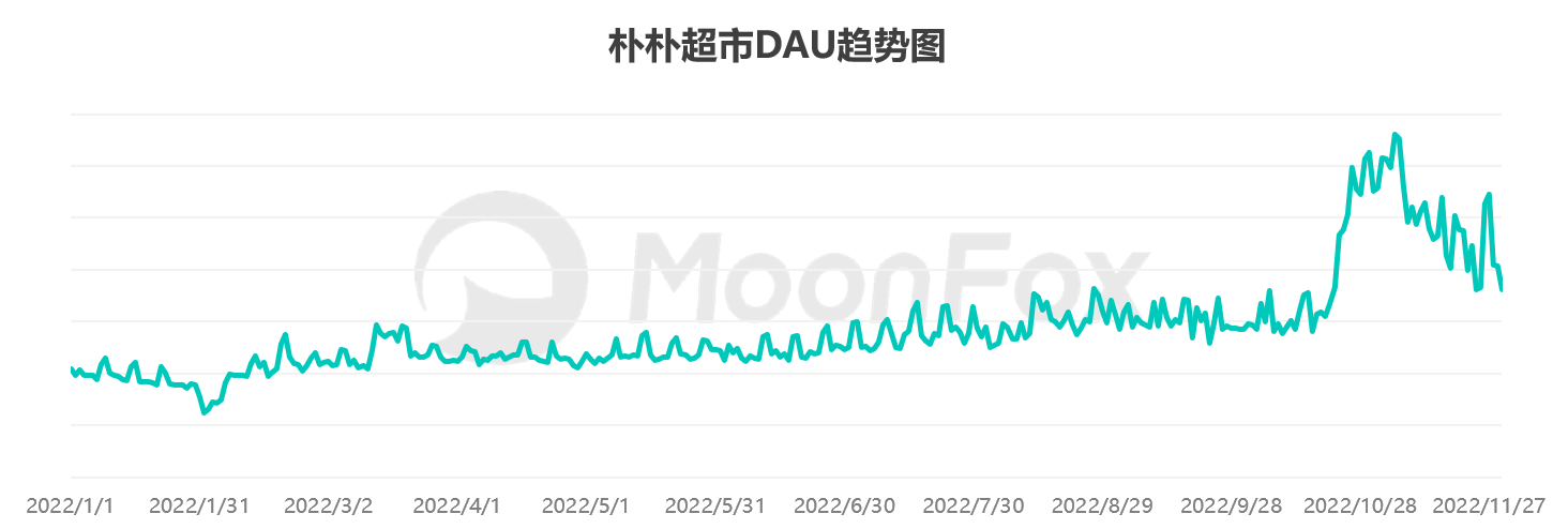 朴朴超市在双十一脱颖而出,截止11月连续39天上榜“上升最快”。DAU增长率在移动购物行业领先,月均DAU相比10月增长了30.34%,MAU增长了26.56%。