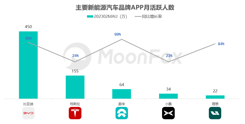 月狐数据显示,主要新能源汽车品牌中,蔚来APP活跃人数相比去年增幅最大。