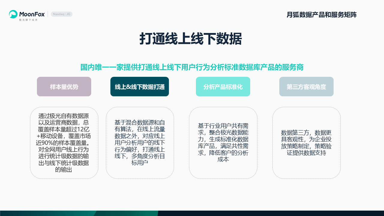 极光作为国内唯一一家打通了线上线下数据并形成标准化产品的服务商,先后推出