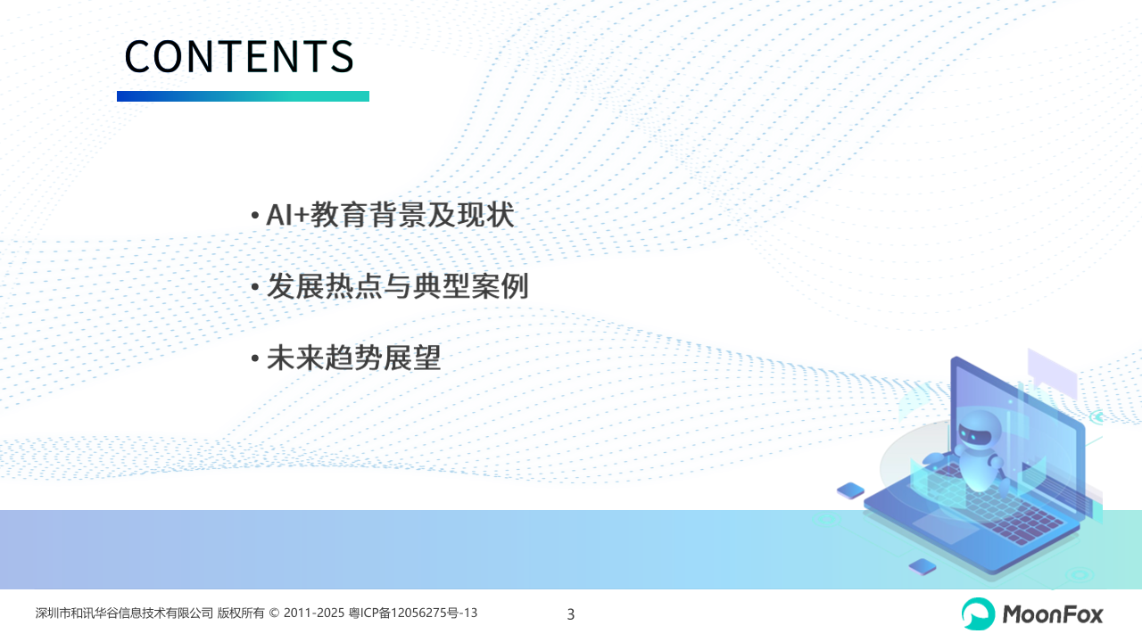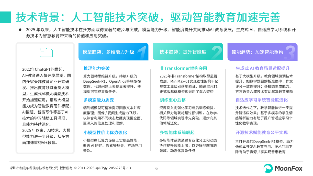 本报告主要聚焦AI在教育行业的融合、应用、发展情况,分析2025年以来AI+教育背景与现状变化、发展热点与典型案例,同时基于研究分析展望未来趋势。报告研究范围主要为在线教育、智慧教育等。