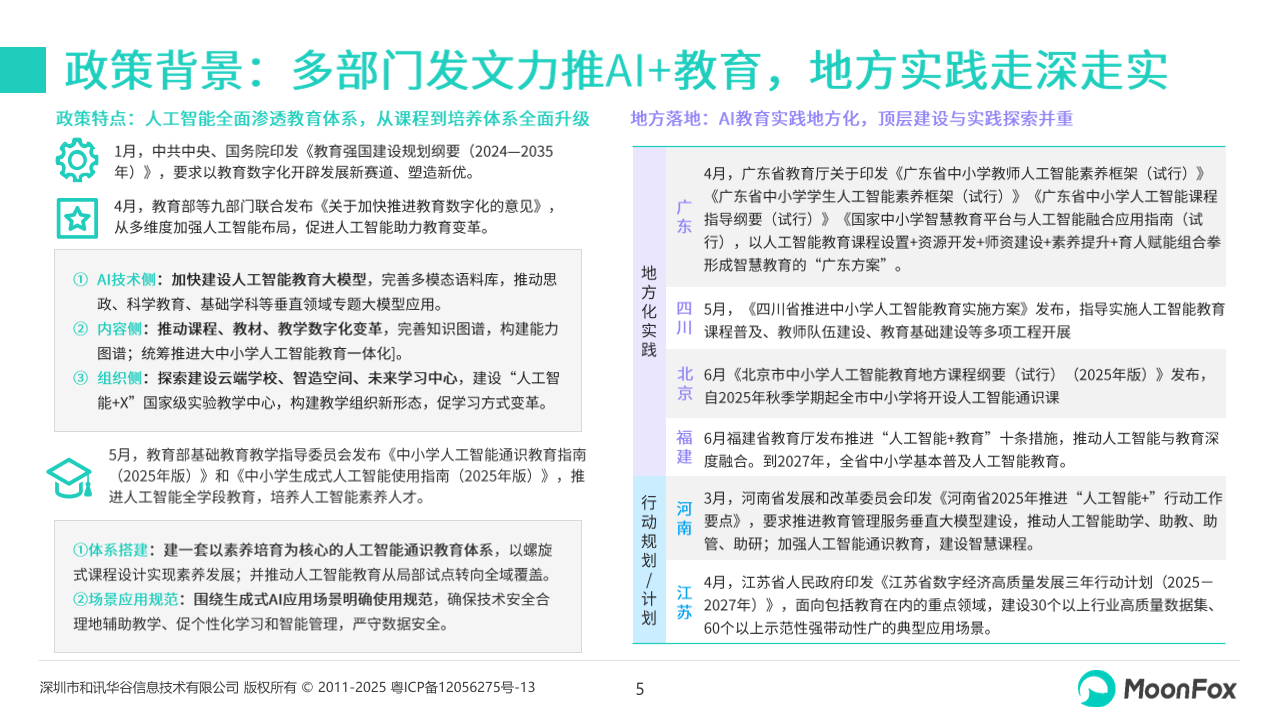 政策背景:多部门发文力推AI+教育,地方实践走深走实