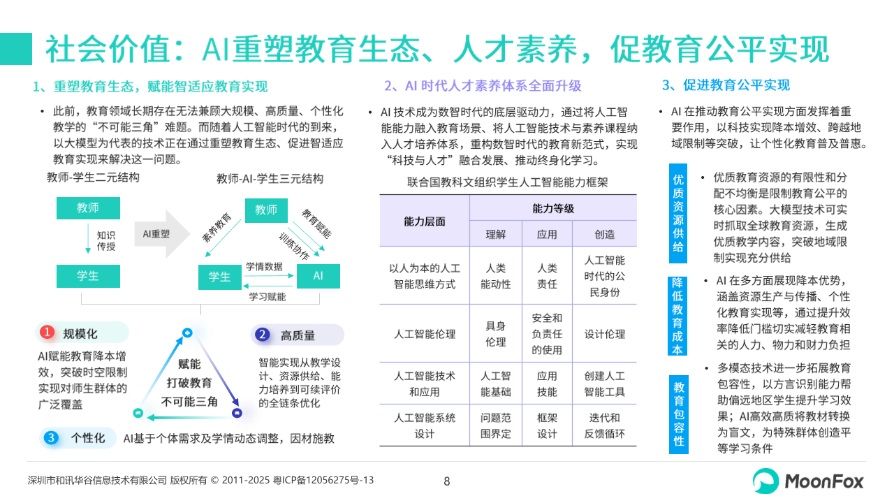 社会价值:AI重塑教育生态、人才素养,促教育公平实现