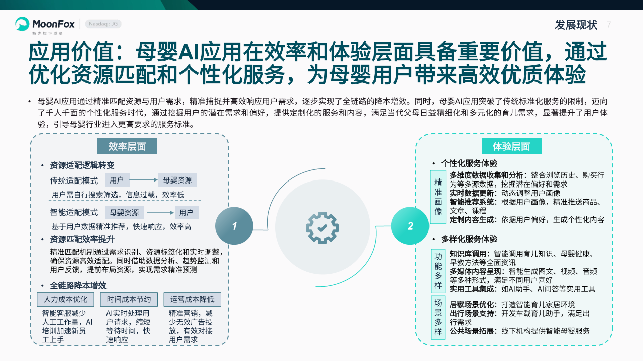 1.2应用价值:母婴AI应用在效率和体验层面具备重要价值,通过优化资源匹配和个性化服务,为母婴用户带来高效优质体验