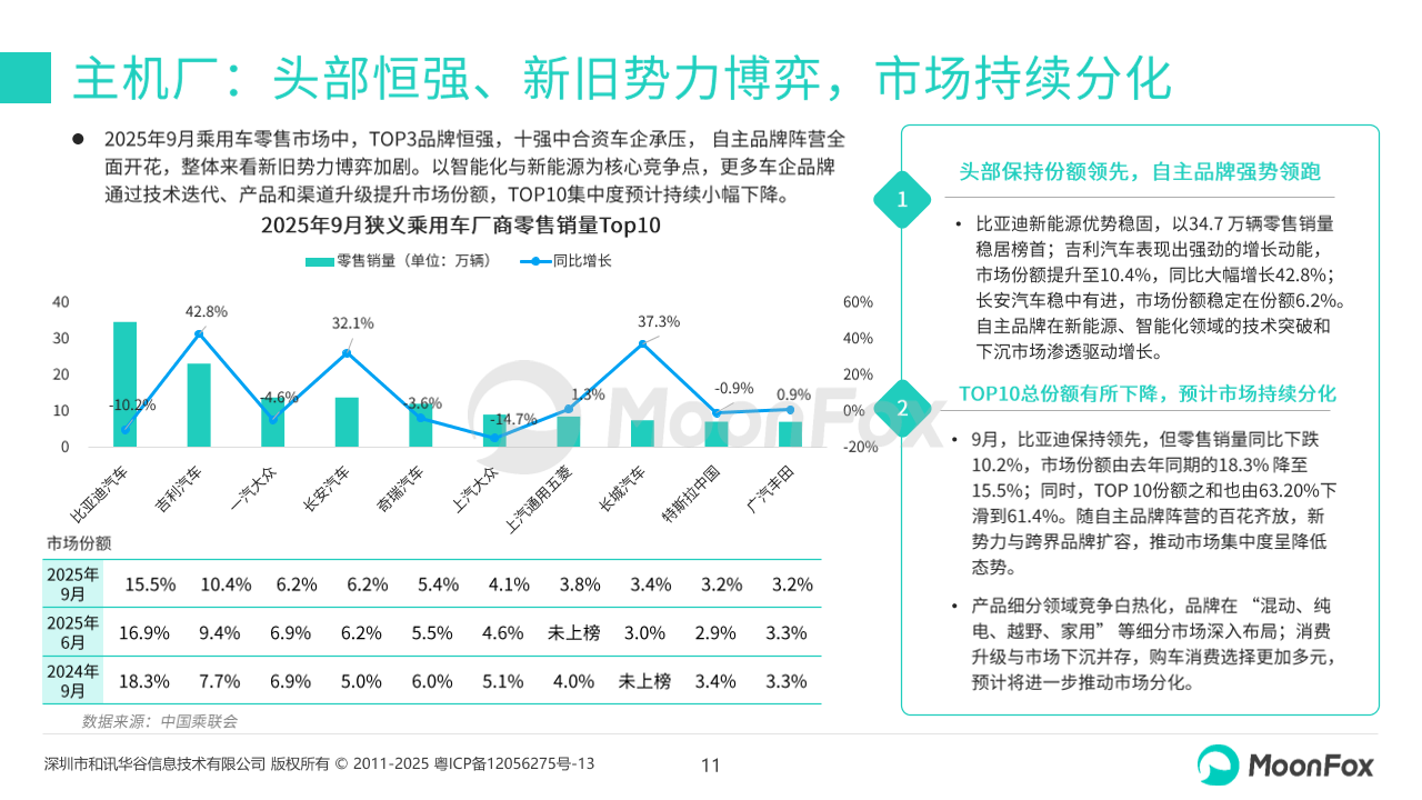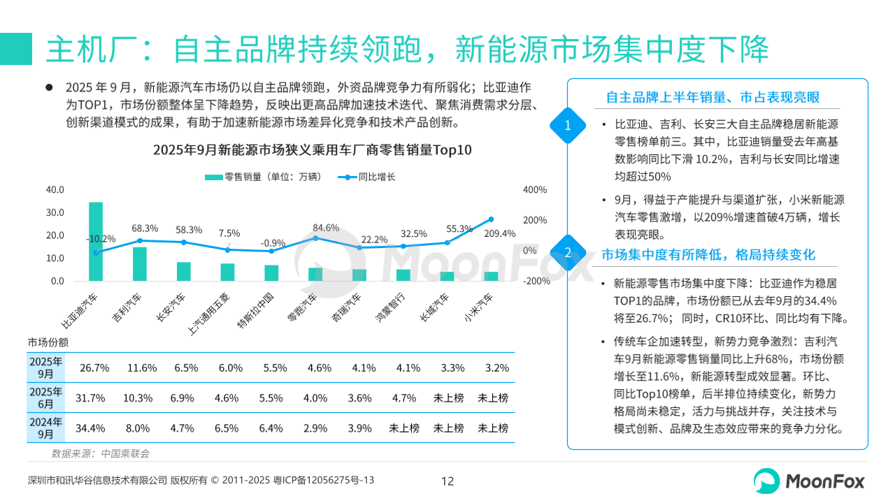 2.主机厂:自主品牌持续领跑,新能源市场集中度下降