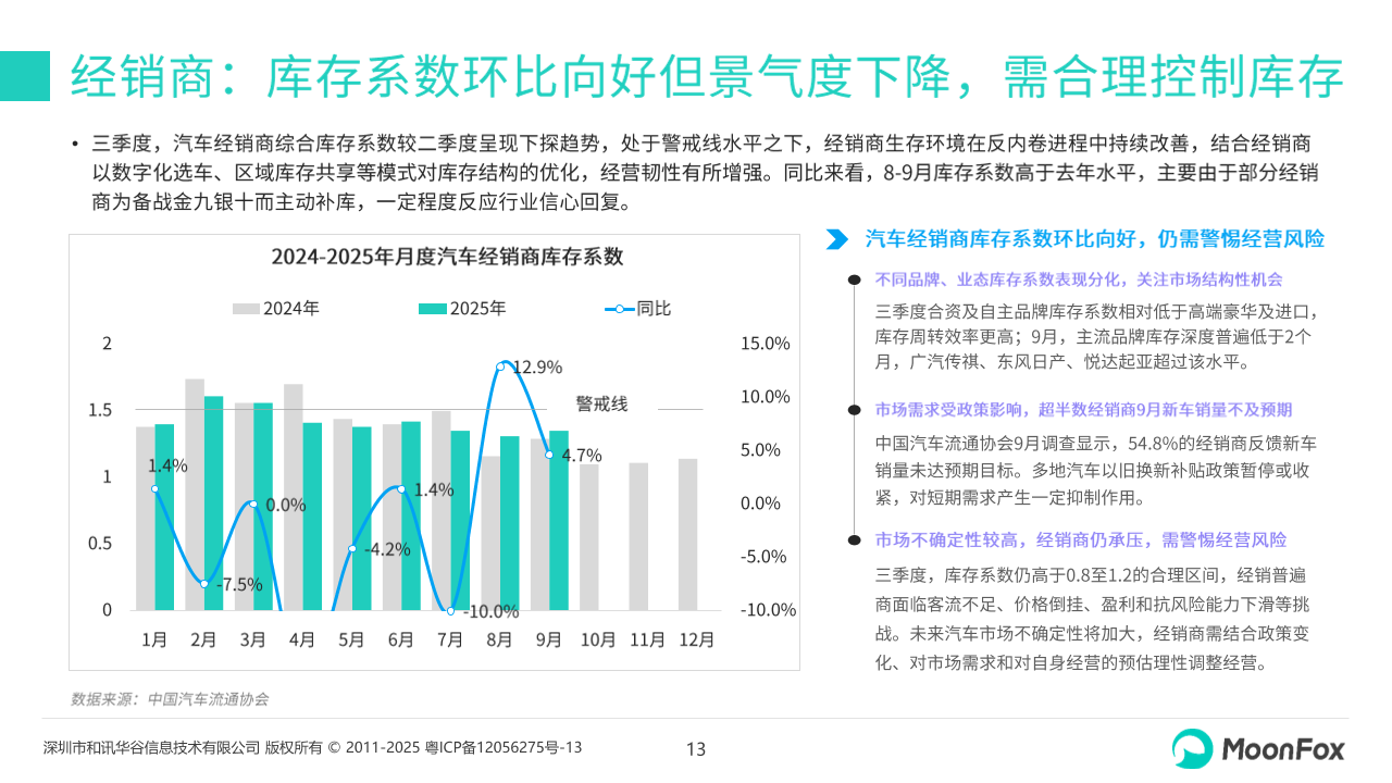 3.经销商:库存系数环比向好但景气度下降,需合理控制库存