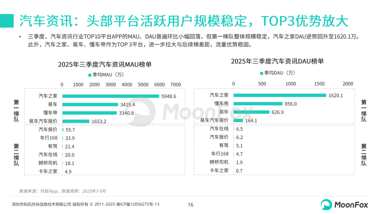 6.汽车资讯:头部平台活跃用户规模稳定,TOP3优势放大