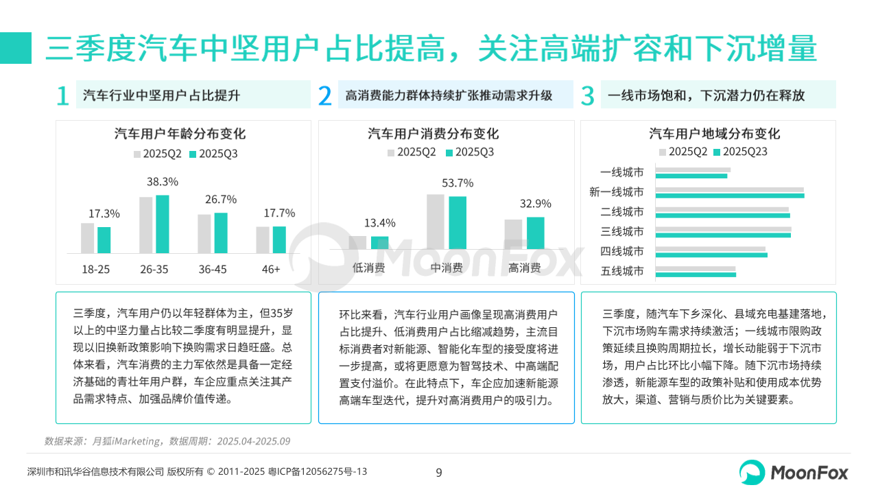 5.三季度汽车中坚用户占比提高,关注高端扩容和下沉增量