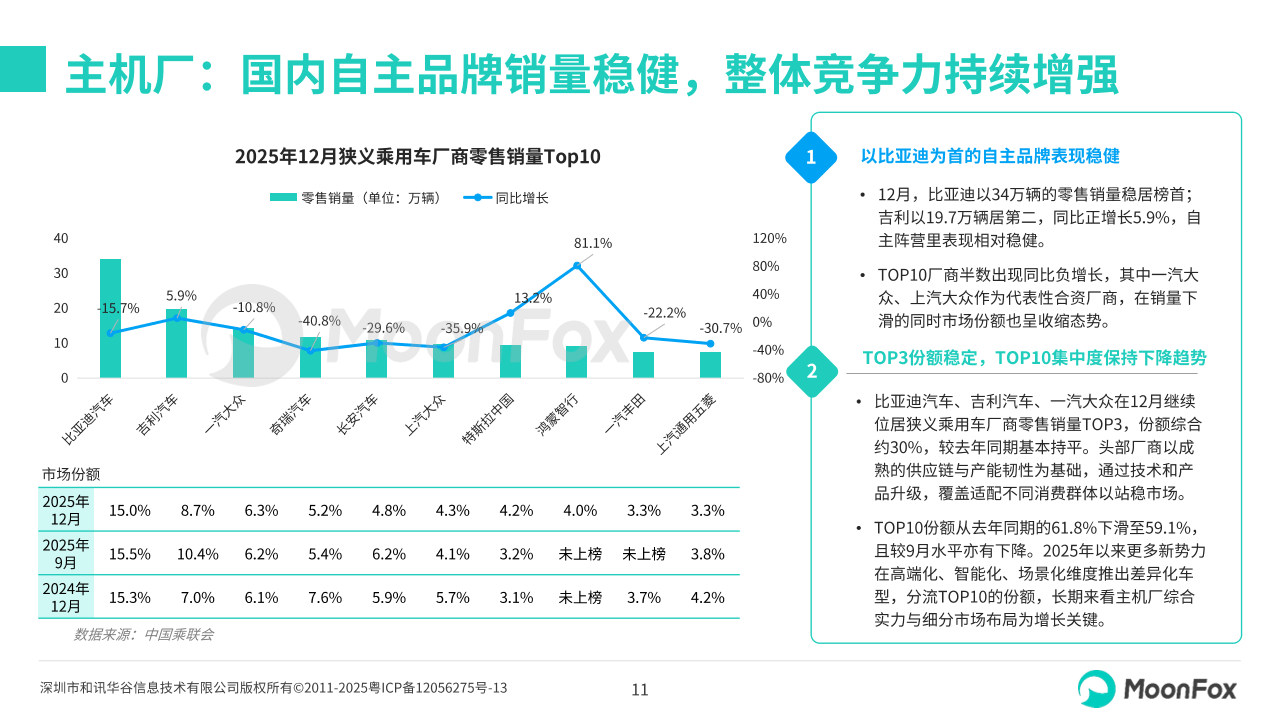 主机厂:国内自主品牌销量稳健,整体竞争力持续增强