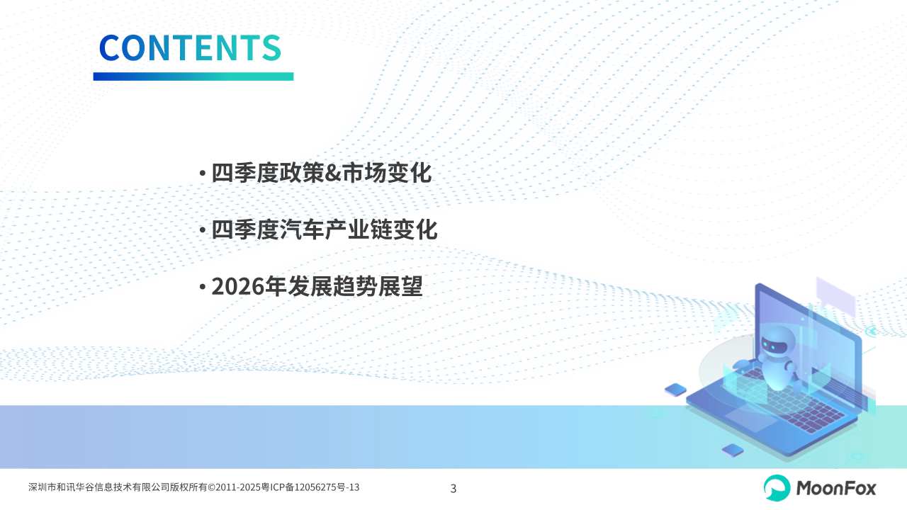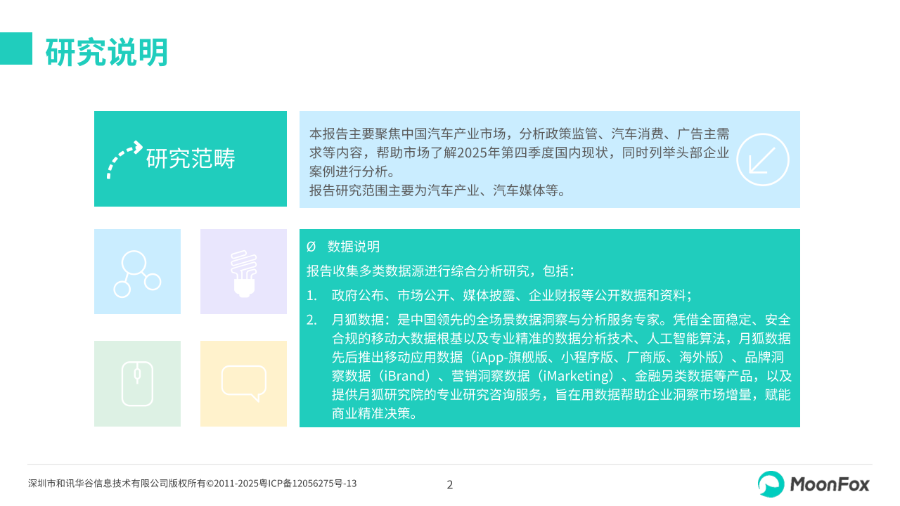 本报告主要聚焦中国汽车产业市场,分析政策监管、汽车消费、广告主需求等内容,帮助市场了解2025年第四季度国内现状,同时列举头部企业案例进行分析。报告研究范围主要为汽车产业、汽车媒体等。