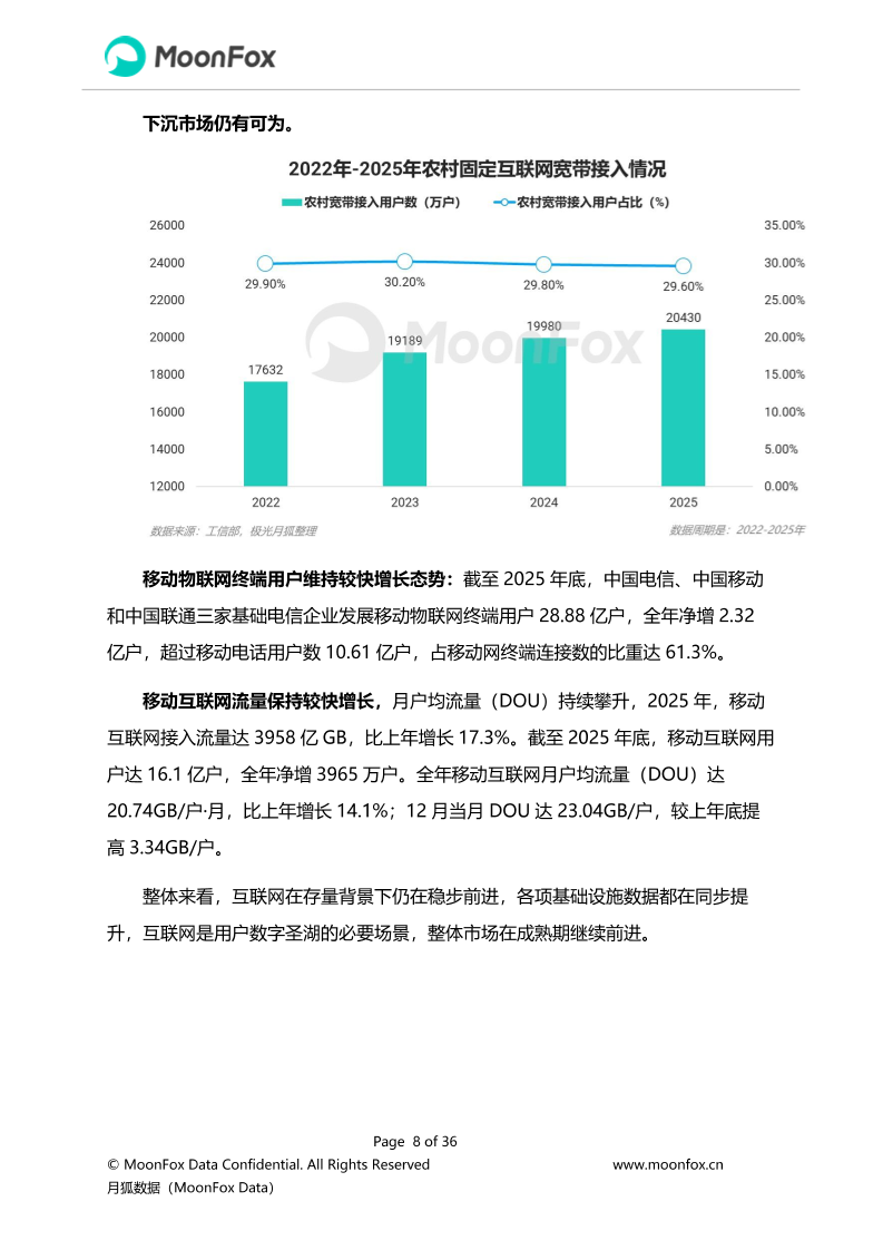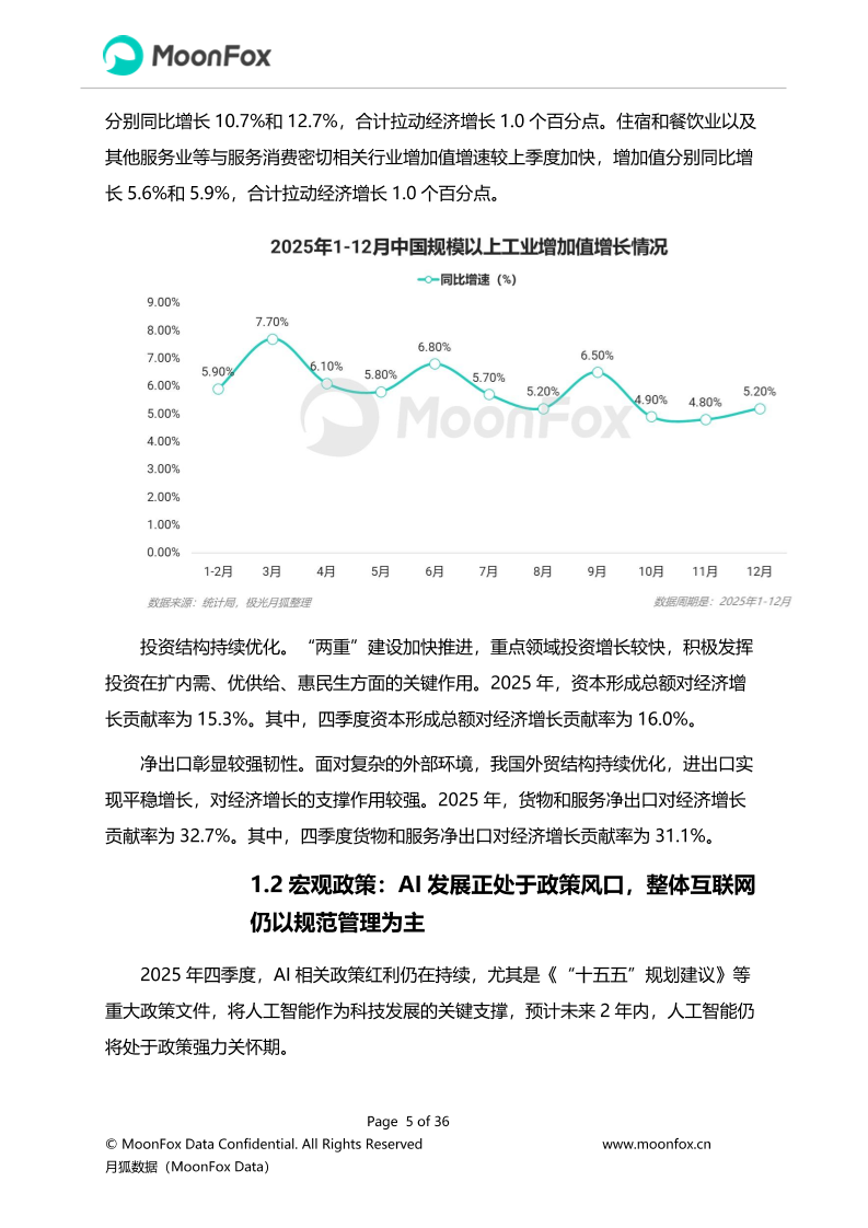 展望2026年,互联网将继续稳定发展,政策监管也将更加合理,引导行业进入可持续前进道路,而AI预计在未来几年会继续爆发,在各行各业爆发创新模式,帮助互联网实现二次增长。