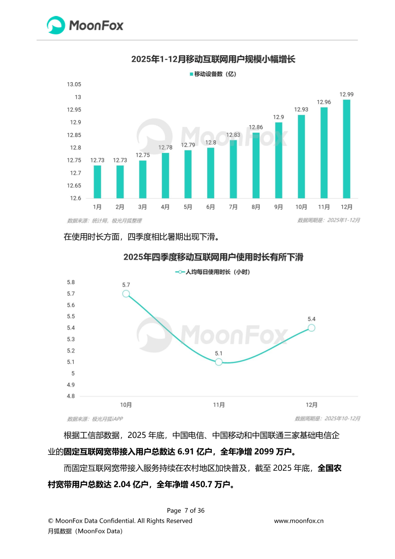1.3 互联网流量变化:移动设备达到12.99亿,用户时长相比三季度有所下滑