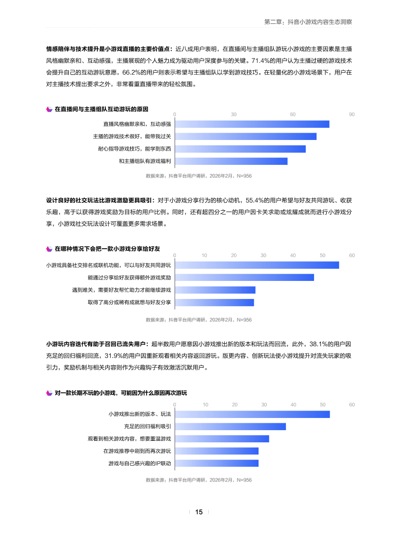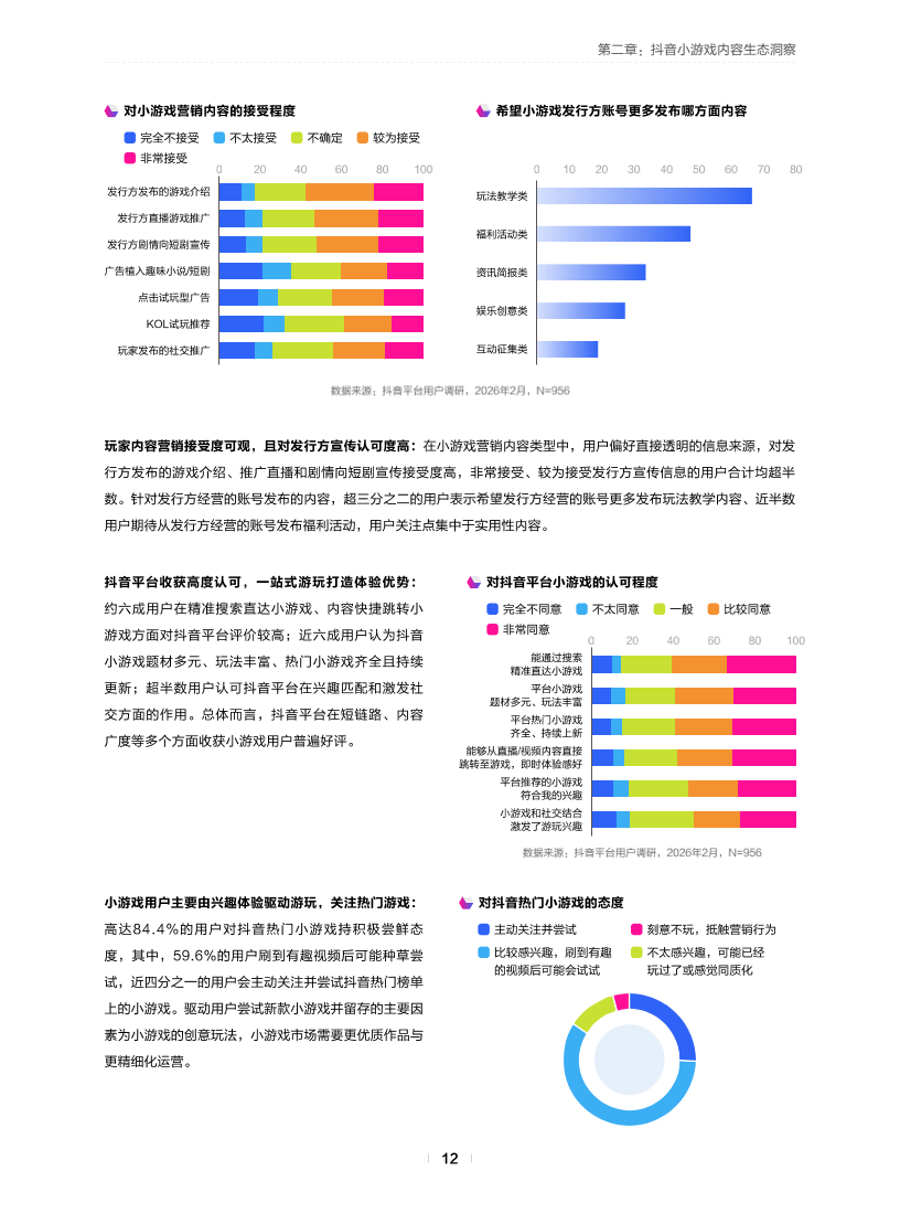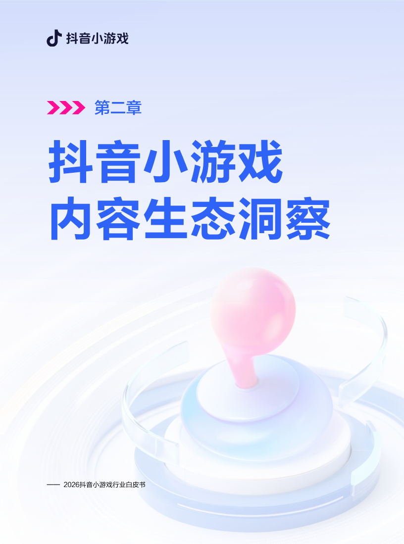 2026年3月7日,抖音小游戏联合极光月狐发布了《2026抖音小游戏行业白皮书》。围绕“社交聚势、增长无界”的主题,报告对小游戏行业发展现状、抖音平台小游戏用户内容偏好、小游戏营销获客方法论以及未来趋势等内容进行了深度分析,为从业者提供建议及参考。